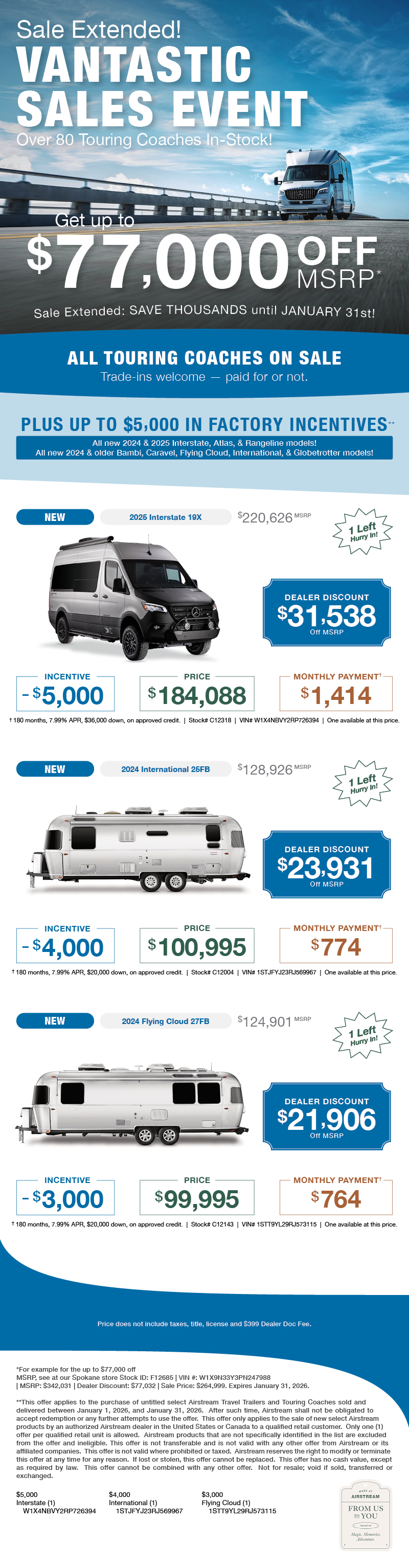 Experience the perfect blend of classic Airstream style and practical comfort with this 27' Flying Cloud Twin model. The front twin bed layout offers better balance while towing and more usable interior space. Inside, you’ll find a bright, modern interior with panoramic windows, a full rear bathroom, a fully equipped galley kitchen, and a convertib...