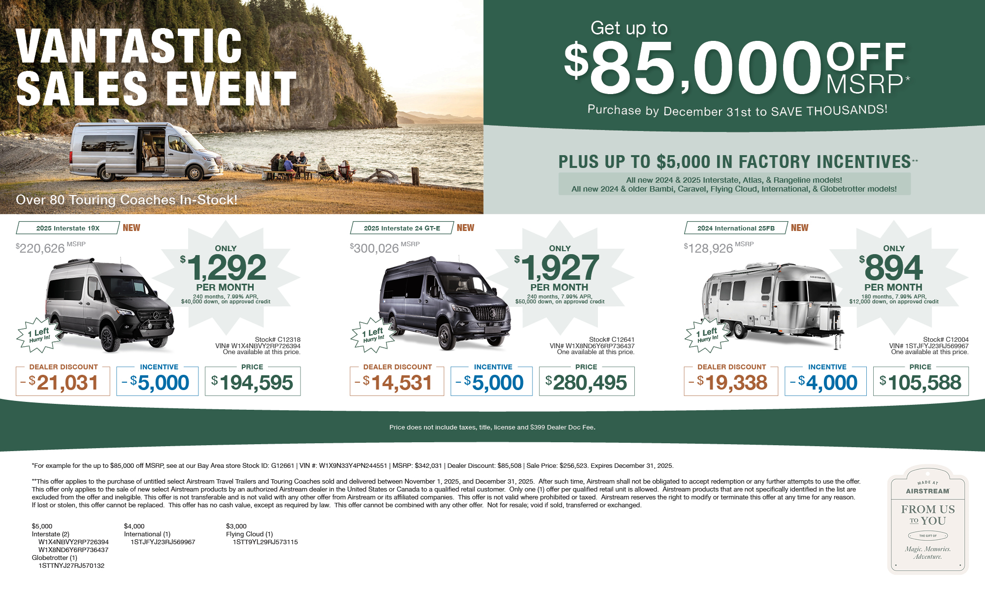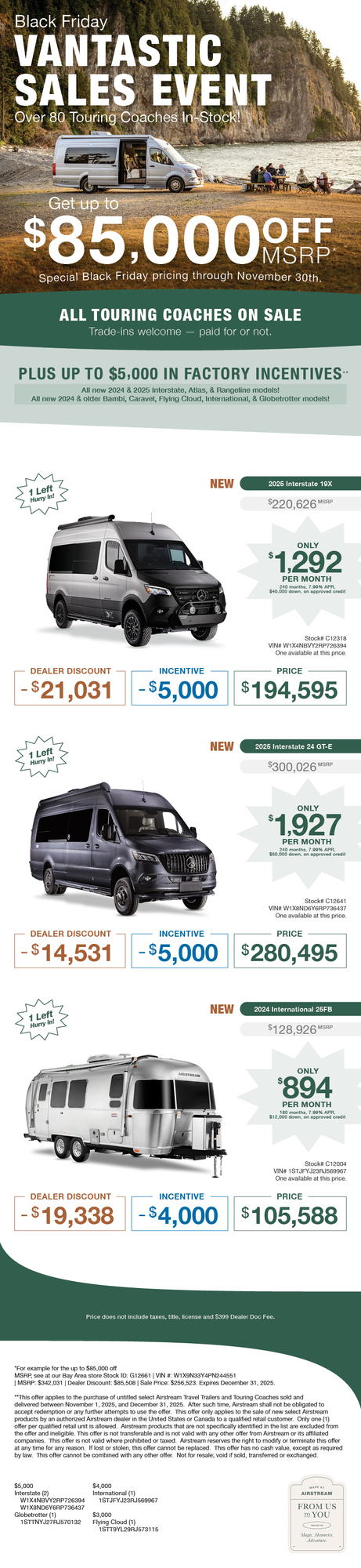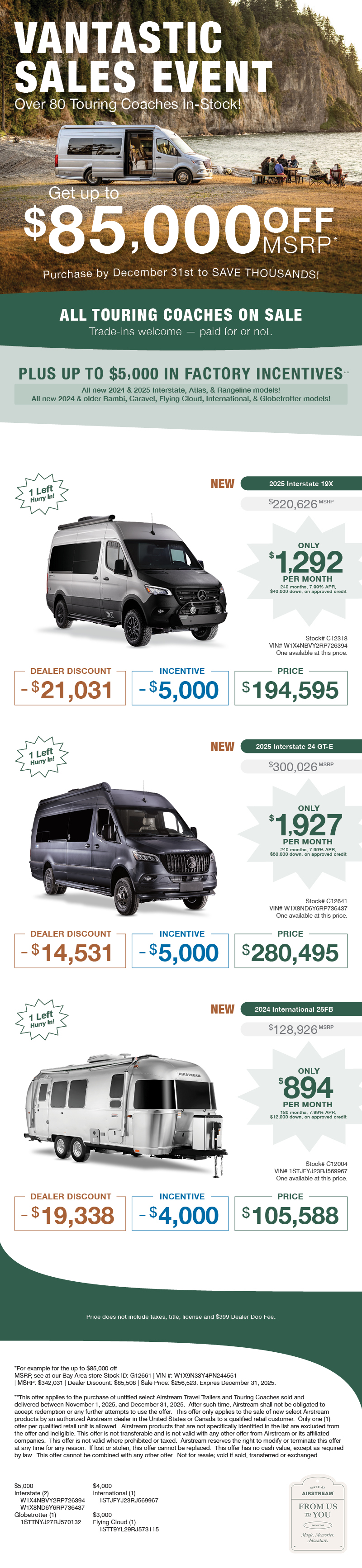 2025 Airstream Atlas™ Murphy Suite The Atlas Touring Coach is our most luxurious touring coach to date. It’s a Class B RV built on the legendary Mercedes-Benz® Sprinter van chassis and inspired by our trailblazing Airstream Interstate series. In fact, with its power slide-out, richly appointed features and finishes, and understated automotive styli...