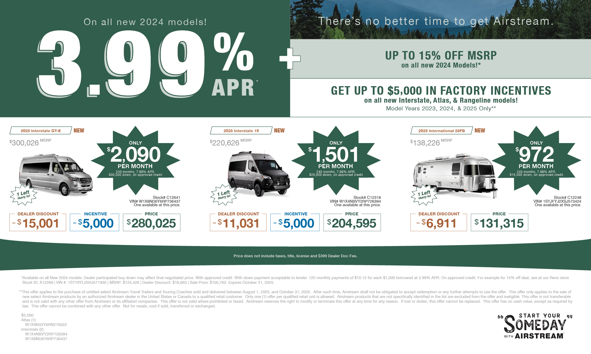 2026 Airstream Atlas 24 The Atlas Touring Coach is our most luxurious touring coach to date. It’s built on the legendary Mercedes-Benz® Sprinter van chassis and inspired by our trailblazing Airstream Interstate series. In fact, with its power slide-out, richly appointed features and finishes, and understated automotive styling from grill to bumper...